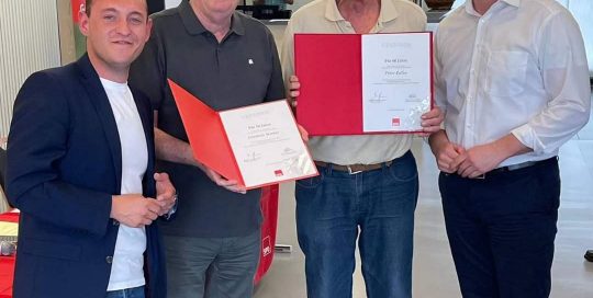 Janick Schmitz2023-07-17T18:16:05+02:00Der SPD-Ortsverein Heimbach-Weis hatte auf seiner vergangenen Vorstandssitzung Grund zum Feiern: Ausgezeichnet wurden Rosi Muscheid für 25 Jahre treue Mitgliedschaft sowie Hans-Peter Schmitz für 40 Jahre. Ortsvereins-Vorsitzender Uwe Siebenmorgen freute sich besonders, dass er gemeinsam mit Sven Lefkowitz als Vertreter der SPD-Stadtratsfraktion sowie Janick Helmut Schmitz, SPD-Regionalgeschäftsführer und stellvertretender Ortsvereins-Vorsitzender, die Ehrungen durchführen und [...]